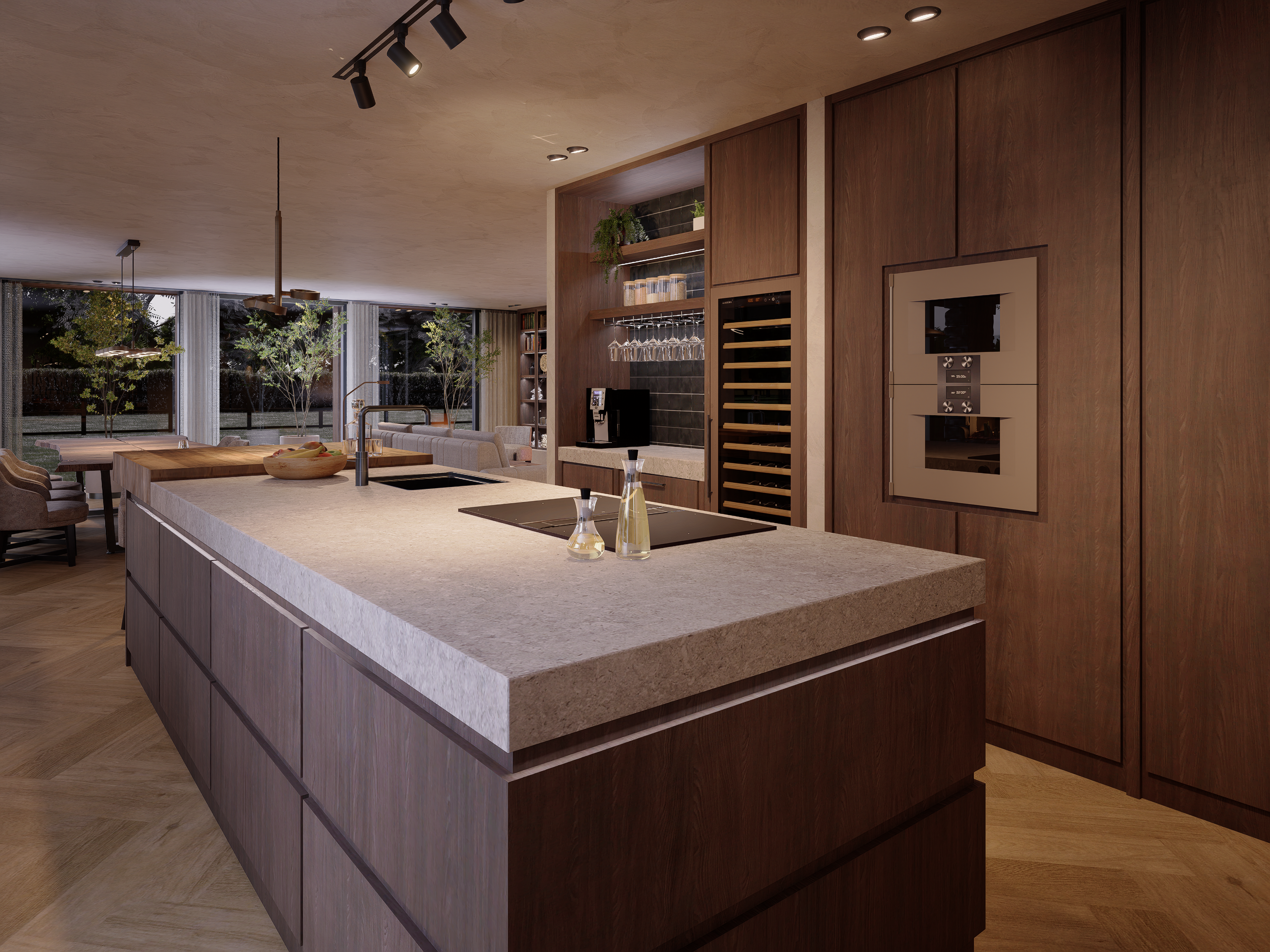 Om niets meer aan de verbeelding over te laten, vertaal ik de plannen naar fotorealistische 3D visualisaties en vraag ik tastbare stalen aan, zodat je het ontwerp niet alleen ziet, maar ook voelt. Na het concept volgt de technische uitwerking voor het maatwerk meubilair en een doordacht verlichtingsplan. Al deze onderdelen zijn onlosmakelijk met elkaar verbonden en worden met dezelfde zorg en precisie uitgewerkt.